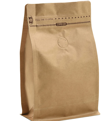 ถุงบรรจุภัณฑ์คั่วกาแฟสำเร็จรูปกระดาษคราฟท์กันความชื้นถุงกาแฟรักษ์โลกพร้อมวาล์วและซิปด้านข้างพิมพ์แบบกำหนดเอง